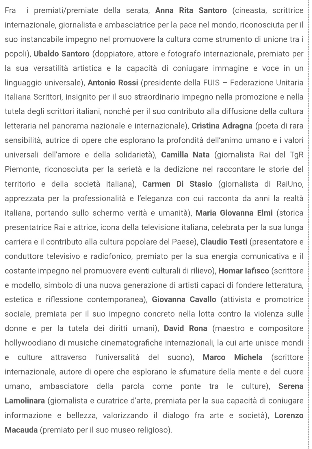 Giunto quest'anno alla sua 29esima edizione vanta oltre 500 artisti premiati nelle più disparate discipline artistiche e culturali.